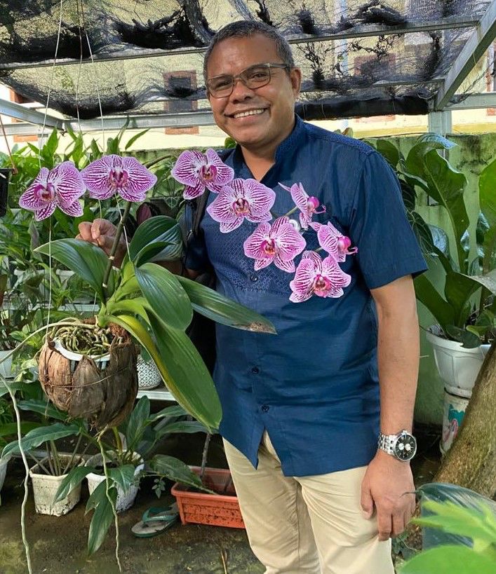 Lebih dari 30 jenis anggrek tumbuh di halamannya. “Anggrek itu simbol kesabaran. Ia tumbuh pelan, beradaptasi, lalu berbunga di saat yang tepat sama seperti manusia. Hasil tak akan mengkhianati proses,” tuturnya penuh makna.